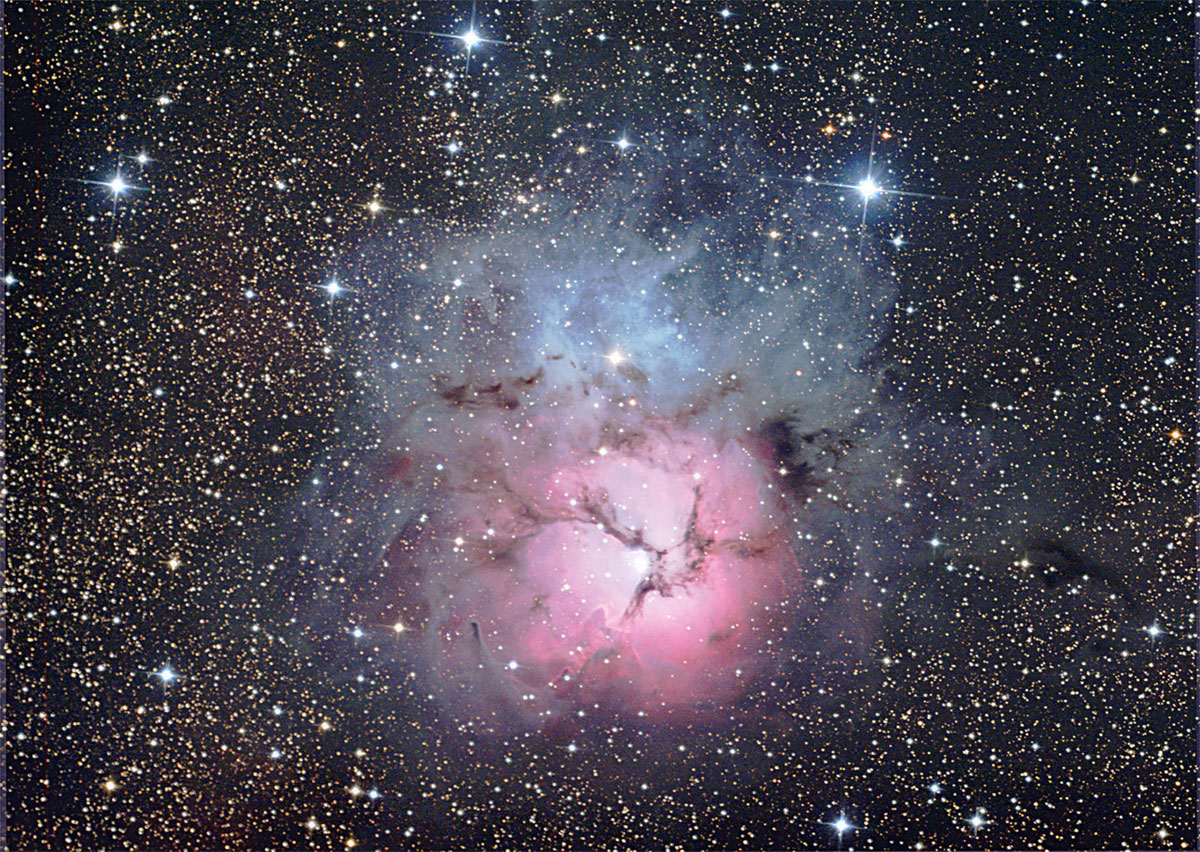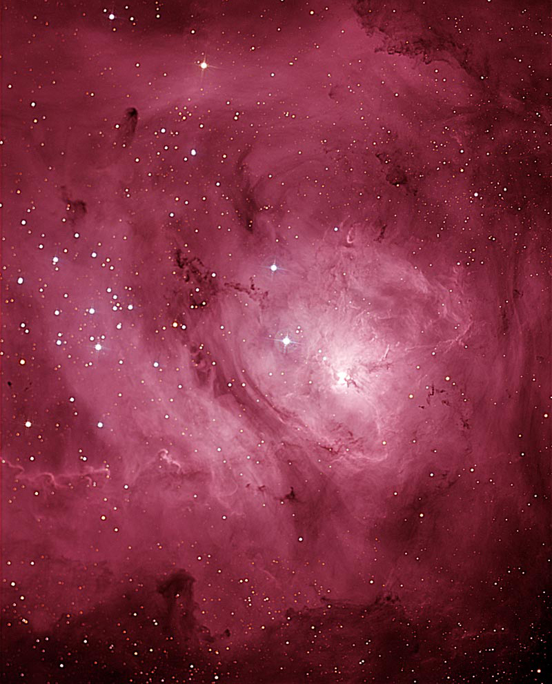 Emissionsnebel sind riesige Gaswolken aus Wasserstoff, die durch heiße Sterne zum Leuchten angeregt werden. Der Wasserstoff emittiert langwelliges Licht, das wir an der roten Farbe erkennen. Außerdem befinden sich in solchen Wolken andere Gase und Staubteilchen, die auf Bildern als dunkle Löcher oder Säulen erscheinen. In solchen Globulen entstehen im Laufe der Jahrmillionen durch Verdichtung ständig neue Sterne.